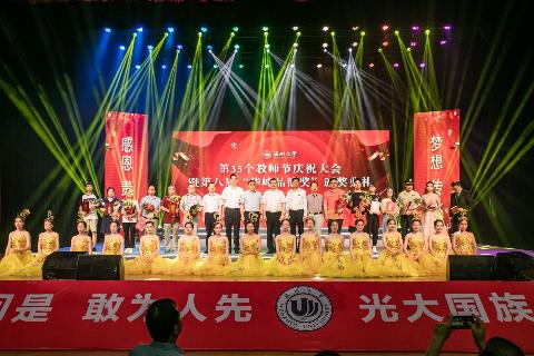 今天下午,温州大学庆祝第35个教师节暨第八届“华峰品德奖”颁奖大会在育英大礼堂举行。