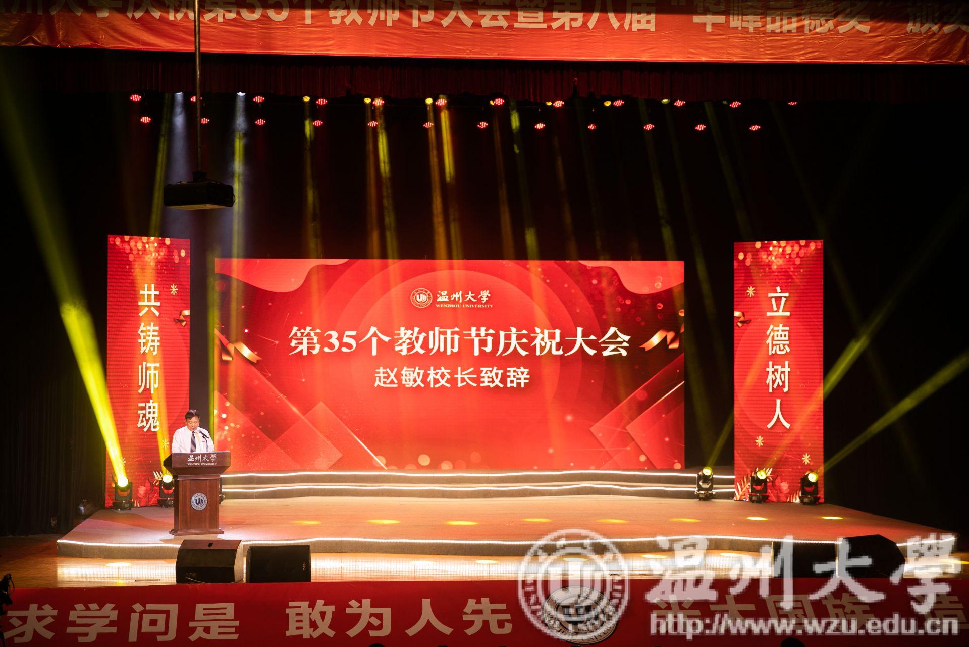 颁奖大会上,校长赵敏致辞。他说,教师是立教之本、兴校之源。温州大学在办学86年的历程中,始终坚持“立德树人”的教育理念,努力建设一支有理想信念、有道德情操、有扎实学识、有仁爱之心的“四有”教师队伍。在这里,无论是学术造诣深厚的教授名师,还是初入职场的青年教师,他们以德立身、以德立学、以德施教,把真、善、美的种子播撒到每个学生的心田,以高尚的师德师风、高超的教学艺术和高深的学术造诣,生动诠释了人民教师光荣而神圣的职责和使命。