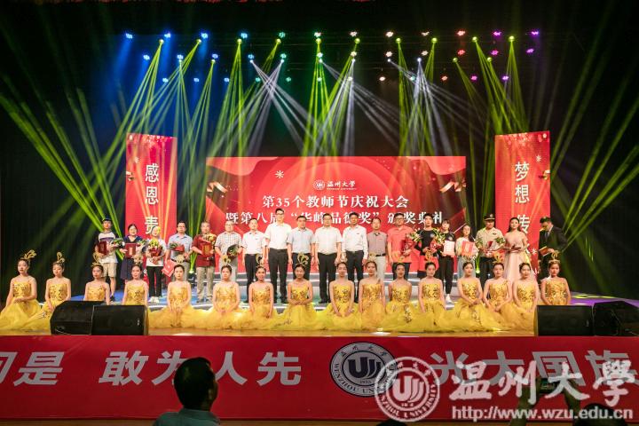 温大校长赵敏致辞。他说,教师是立教之本、兴校之源。温州大学在办学86年的历程中,始终坚持“立德树人”的教育理念,努力建设一支有理想信念、有道德情操、有扎实学识、有仁爱之心的“四有”教师队伍。在这里,无论是学术造诣深厚的教授名师,还是初入职场的青年教师,他们以德立身、以德立学、以德施教,把真、善、美的种子播撒到每个学生的心田,以高尚的师德师风、高超的教学艺术和高深的学术造诣,生动诠释了人民教师光荣而神圣的职责和使命。