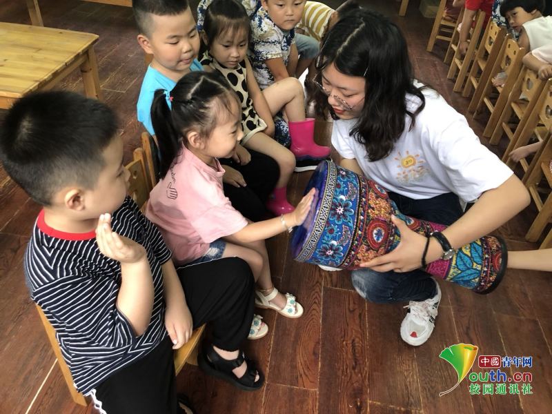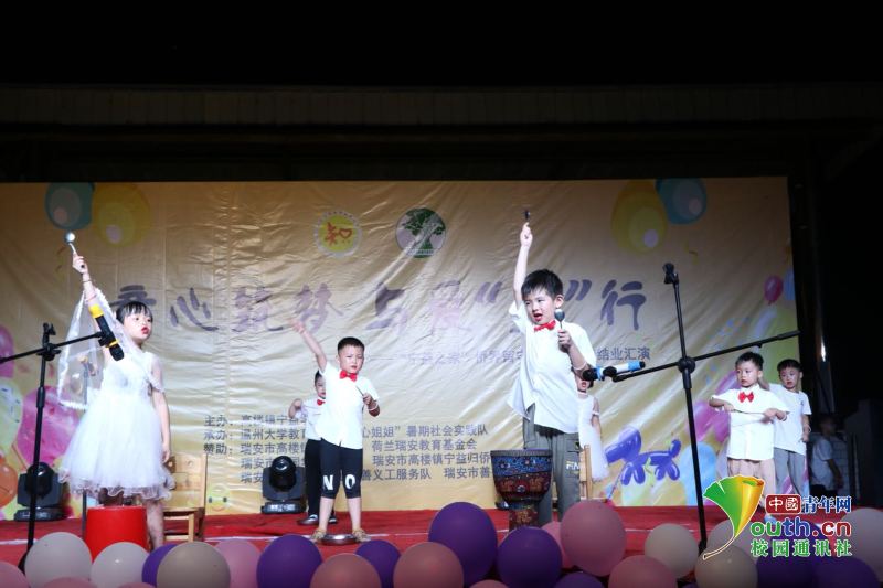 中国青年网瑞安8月22日电(通讯员 徐夏)7月7日,温州大学教师教育学院知心姐姐暑期社会实践队来到瑞安市高楼镇宁益学校开展为期十五天的暑期公益夏令营活动。据悉,这是“知心姐姐”团队开展暑期支教活动的第九年。温州瑞安是著名的侨乡,这里的留守儿童长期缺乏父母的亲情温暖和社会关注,局限于乡里,与外界接触困难,而乡村学校艺术教育师资匮乏,纵使器材齐全也无人可教,导致当地孩子艺术熏陶欠缺,审美体验亟待发展。为此,知心团队统筹设计了以艺术熏陶为核心的八大类趣味课程,涵盖品德教育、科技创新等内容,致力于打造寓教于乐、寓学于乐的公益夏令营活动,为孩子创设独特的艺术体验和丰富的想象创造空间,努力营造起积极向上的成长氛围,助力塑造侨乡儿童健康向上的人生观和价值观。