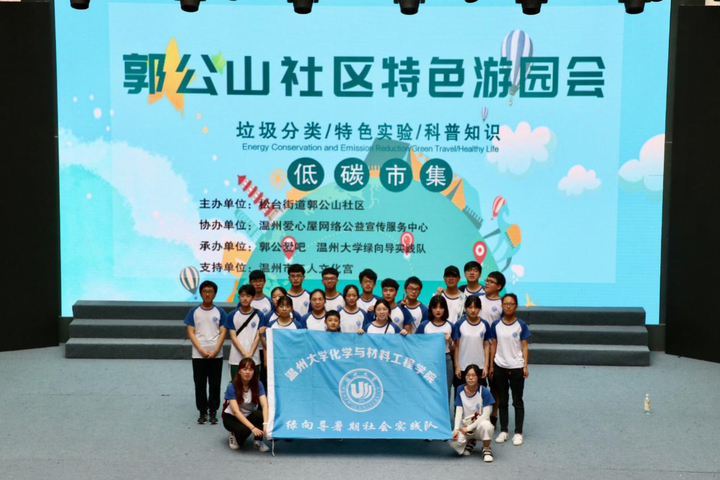 近日,温州大学化学与材料工程学院绿向导暑期社会实践队在郭公山开展特色游园会,以垃圾分类、特色实验、科普知识为主题,开展低碳市集,绿色交易等活动。活动引起郭公山市民的热烈关注,许多家长和孩子们共同参与,为建设美丽社区齐出力。