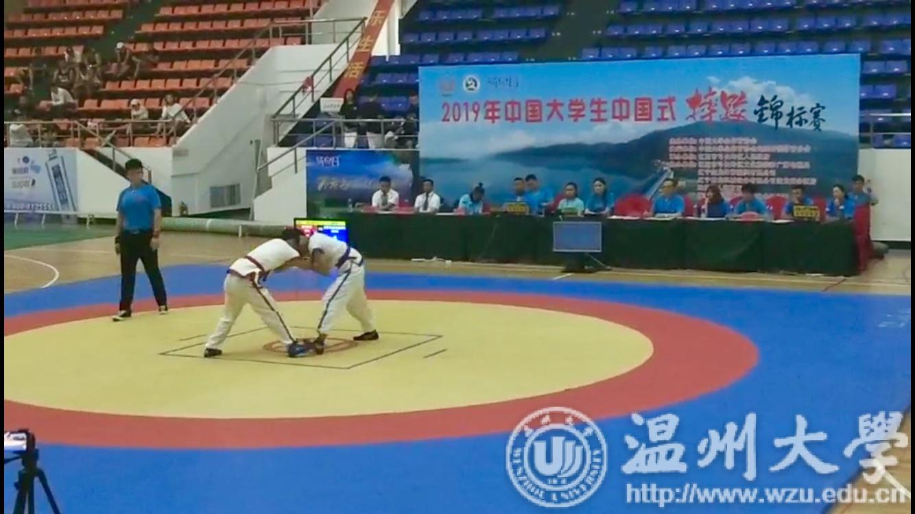 在昨天结束的2019年第四届中国大学生中国式摔跤锦标赛上,温州大学摔跤队取得1项冠军,2项亚军,3项季军,并摘得团体总分第三名的优异成绩。