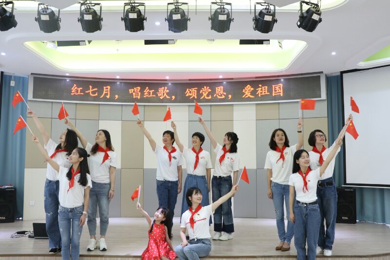 此外,温州大学附属实验幼儿园党支部组织开展“红七月、唱红歌、颂党恩、爱祖国”主题党日活动,为党的98岁华诞献礼。教育学院的学前教育专业的学生党员们和附属实验幼儿园三所园区的教师党员们共同参与,在不同的地点,用不同的方式同唱一首红歌。通过集体大合唱的形式,手挥国旗,群情激昂,讴歌新时代、展现新作为。活动过程中,见证20多年温大附幼发展的退休党员章云琴老师也满怀激情歌唱着,令在场的党员们深受教育和感动。