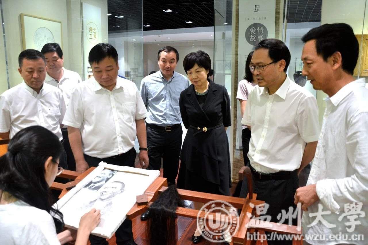 陈作荣一行先后考察了温州大学校史博物馆、发绣馆,并召开座谈会,就如何推进温州大学未来发展进行交流。