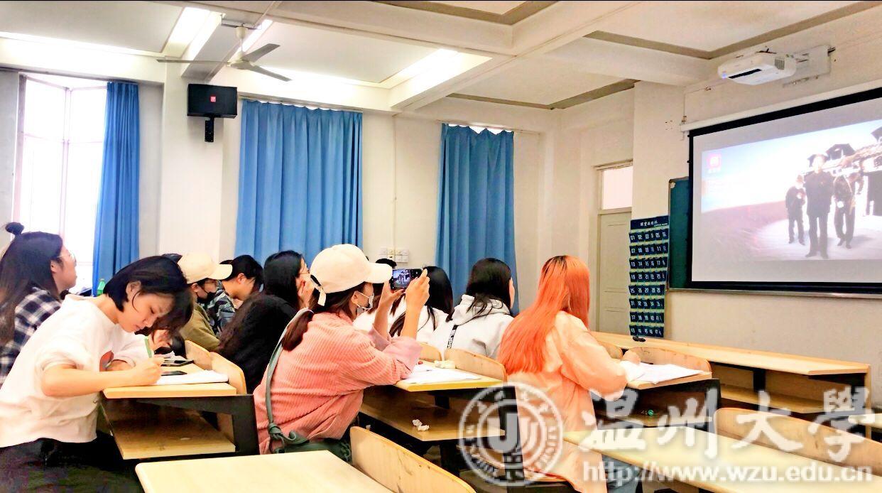 当天下午,温州大学第一堂“英雄家书”思政课开讲。课上,学生通过观看视频、朗诵家书、参与课件制作准备等了解感受英雄刘英。