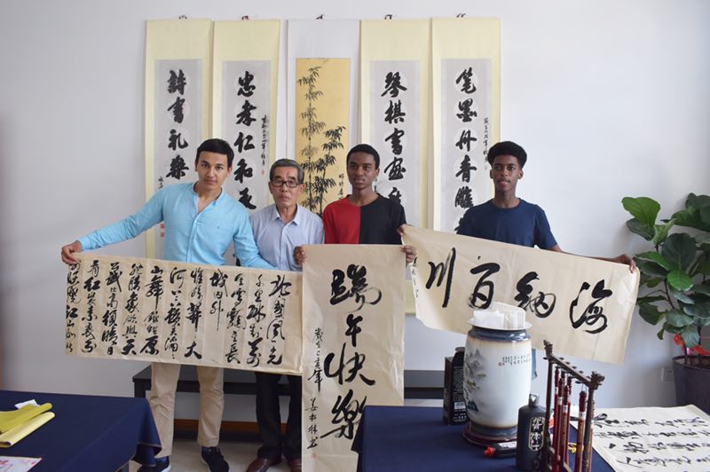 6月4日上午,温大留学生走进龙湾区状元街道银龄养老服务中心参加“跨越国界的爱——外国留学生走进社区之端午敬老公益活动”。来自坦桑尼亚、尼日利亚等国家的留学生为老人们表演了小组唱《We Are The World》,寓意四海皆一家,大家携手创造更美好的明天。与老人们一起打桌球和乒乓球,跟着书法大师学写“端午快乐”毛笔字,为老人表演了篮球友谊赛,还与老人们共进午餐,祝福老人们健康长寿。此次情系端午节,爱在养老服务中心之行,让留学生们了解了温州市养老服务情况,看到了老人们安心、舒心的环境,感受到了老人们晚年老有所居、老有所依,老有所乐的幸福生活。当留学生们得知舞台上表演武术的精神矍铄老人已经81岁高龄的时候,他们纷纷发出赞叹。2016级留学生FRED感慨道,“今天真是个美妙的日子,感谢学校给我一次这么重要的经历,在端午节的时候来到这里,提醒我们要学会照顾老人,这是全世界都一样的。”