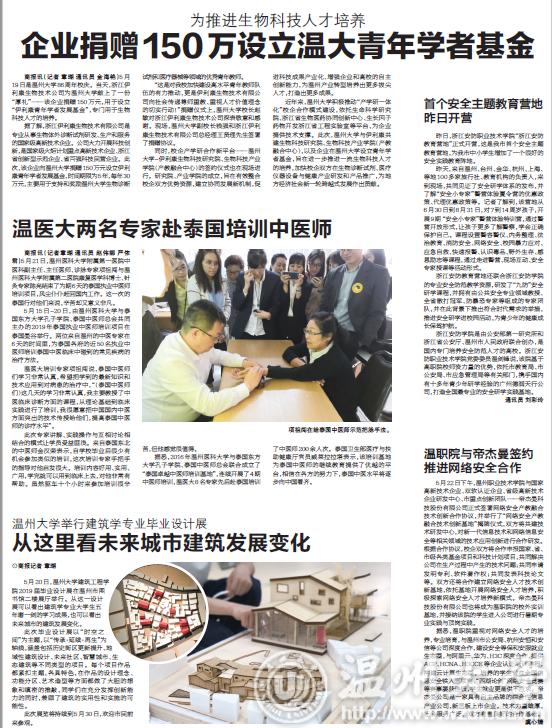 校企双方优势资源,建立协同发展新机制,促进科技成果产业化、增强企业和高校的自主创新能力,为温州产业转型培养出更多拔尖人才,打造出更多成果。近年来,温州大学积极推动“产学研一体化”校企合作模式建设,依托生命科学研究