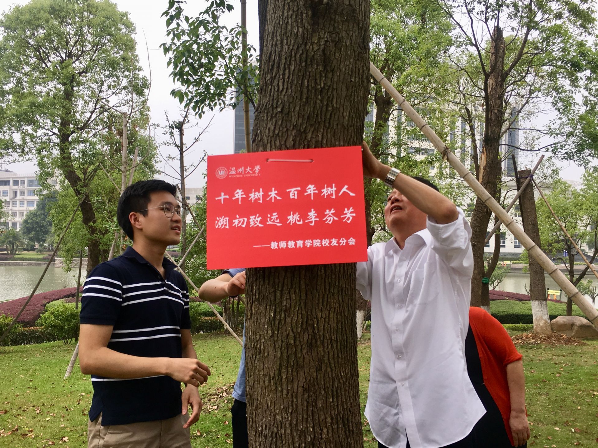 十年树木、百年树人;溯初致远、桃李芬芳。教师教育学院校友分会成立大会之后,会长陈国同、副会长胡君、林传海、沈小玲等老师及一众校友代表一起前往温州大学校友林,捐种了教师教育学院校友分会校友树,一同期待学院在今后的办学征程中培养更多优秀的人才。校友们还分别参观了学校校史博物馆、发绣研究所,部分校友在温大校友之家重叙师生情、校友谊。