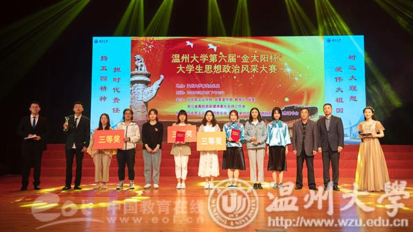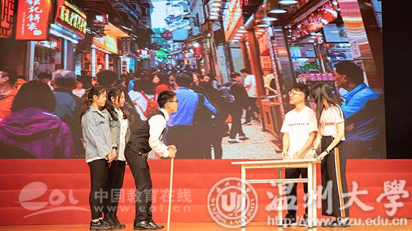 班级全员排练,学院选拔参赛,全校大舞台展演,一年一度的大学生思政课风采大赛已经成为温州大学思政课建设的重要品牌,也是新时代贯彻落实习近平总书记在学校思政课教师座谈会上的重要讲话精神,锐意推进思政课教学改革创新的有力举措。在思政课老师的参与指导下,今年,温大学生围绕课教学内容,结合五四运动100周年、新中国成立70周年、澳门回归20周年、《告台湾同胞书》发表40周年等重大历史事件,通过演讲、朗诵、情景剧、红歌伴唱等形式,把思政课再次搬上舞台,让思政课焕发活力,展现风采。
