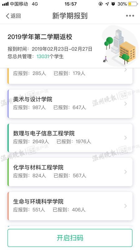 开学季来临,结束假期的学生们陆续返校,各大高校纷纷进入紧张而又忙碌的入学报到、统计工作……2月24日,是温州大学新学期报到日,今年的报到形式“刷爆”眼球,“GPS定位”直接报到,短短几秒学生们就能轻松完成报到工作。