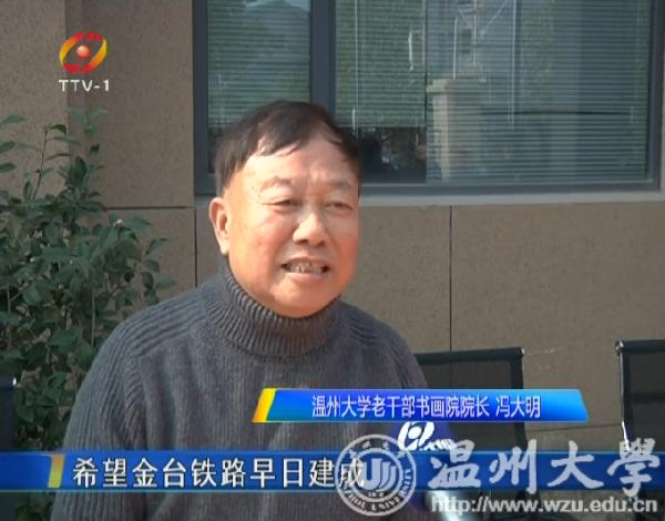 温州大学老干部书画院院长冯大明 :“我们大家都自告奋勇的要走到金台铁路给他们送文化,给他们鼓劲,希望金台铁路早日建成能够为浙江省、为台州的经济建设发挥巨大作用。”
