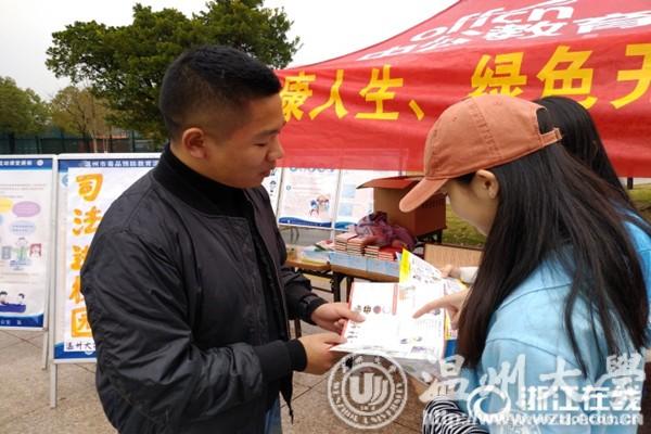 为了维护广大师生消费者的合法权益,营造公平、公正、和谐的消费环境。温州大学瓯江学院团委联合茶山街道司法所采取多种形式广泛宣传《消费者权益保护法》、《产品质量法》等法律法规的知识。