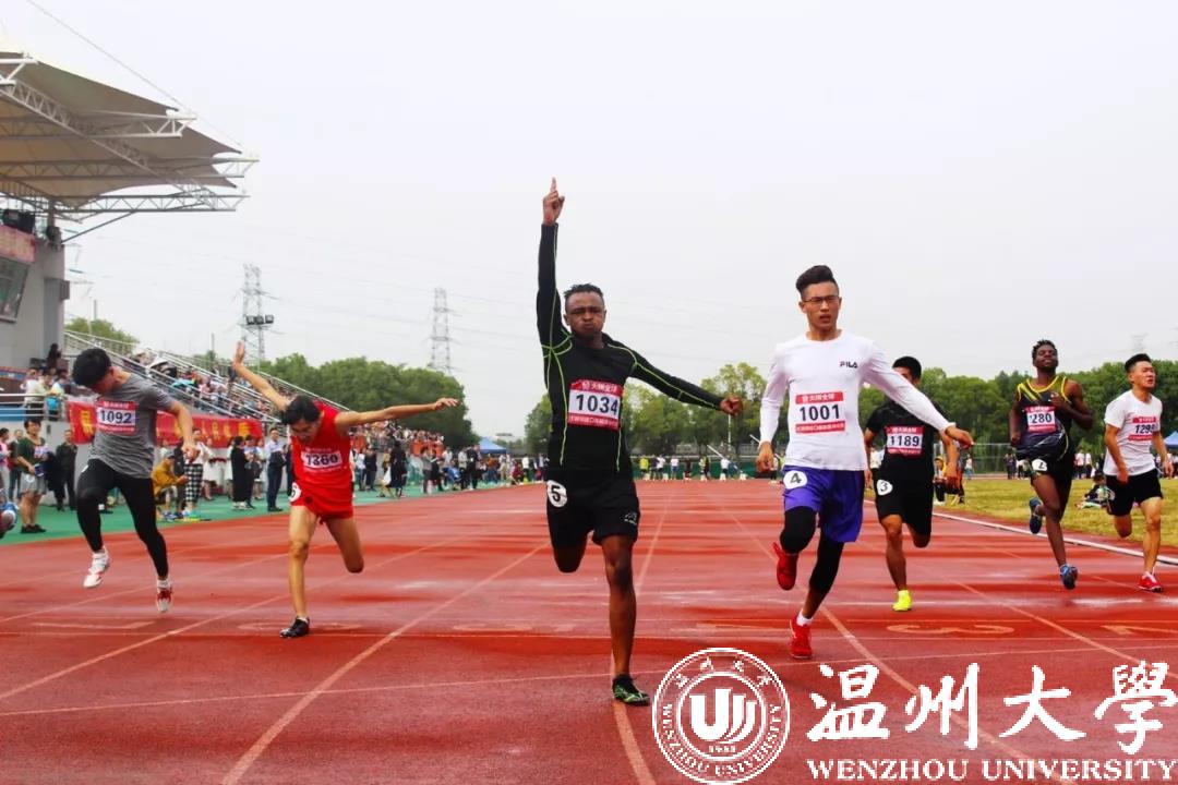 In 2016, Clint came to Wenzhou University to study with his dream & love for running . He put 200-meter sprint champions into his pocket in 2016 and 2017 respectively. In 2018 and 2019, he won the 100-meter championship successively.