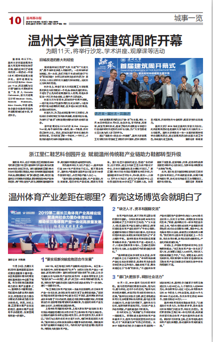 温都讯 昨天下午,温州大学首届建筑周在温大育英图书馆报告厅开幕,随后还举行了建筑周的第一项活动:中意(温州)可持续建筑主题沙 龙 。 意 中 建 筑 论 坛(ICAF)会长Pier Gior gio Turi、都灵建筑与设计部“创新技术系统研究室 ”负 责 人 Corrado Carbonaro、意大利建筑设计师 Beatrice Coda、Roberto Fraternali、Ezio Gaude、中意建筑协会副会长陈铭等国内外建筑领域权威专家、学者参会。