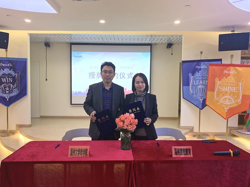 2019年11月17日,温州大学商学院的三十余位国际留学生来到PlayABC温州校区参观学习。当天,温州大学商学院王洪斌博士与PlayABC温州校区校长Wing签署《温州大学商学院与温州星程教育(PlayABC温州校区)签署国际学生实践基地协议》,PlayABC温州校区正式挂牌成为温州大学商学院国际学生实践基地。