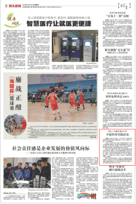 本报讯(通讯员 刘建广) 12月4日下午,温州大学数理学院科创协会团队受邀为洞头二中初一段师生们上演了一场科普盛宴。