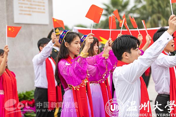 温州大学党委副书记庄兴忠在致辞中表示,作为国旗设计者的母校,温州大学一直注重国旗文化的传承与弘扬,大力开展爱国主义教育,高举“光大国族,造福人群”的学校精神。2011年就成立了国旗护卫队,落实重大节假日和每周一升国旗仪式。国旗广场建好后,学校讲专门组建国旗知识宣讲队伍,让国旗精神融入师生心灵,并为社会提供服务,努力将其打造成温州市学生爱国主义教育基地。同时,学校还先后建成校史博物馆、红色主题现场教学场馆、“瓯江红”党建基地等爱国主义教育馆舍,创排了爱国主义原创歌剧《五星红旗》,每年举办思想政治理论知识竞赛、学生思想政治风采大赛等主题活动,把爱国主义教育融入全校工作全过程。