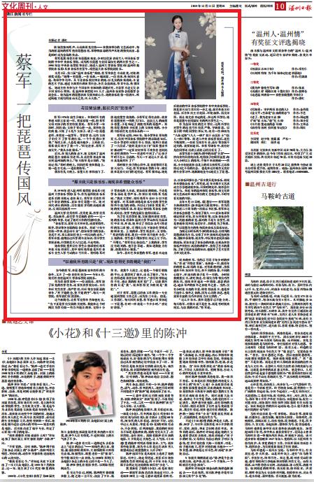 如今的蔡军,在琵琶演奏家和教师的身份外,又多了一份责任和担当——今年6月,她受聘担任温州大学音乐学院副院长。