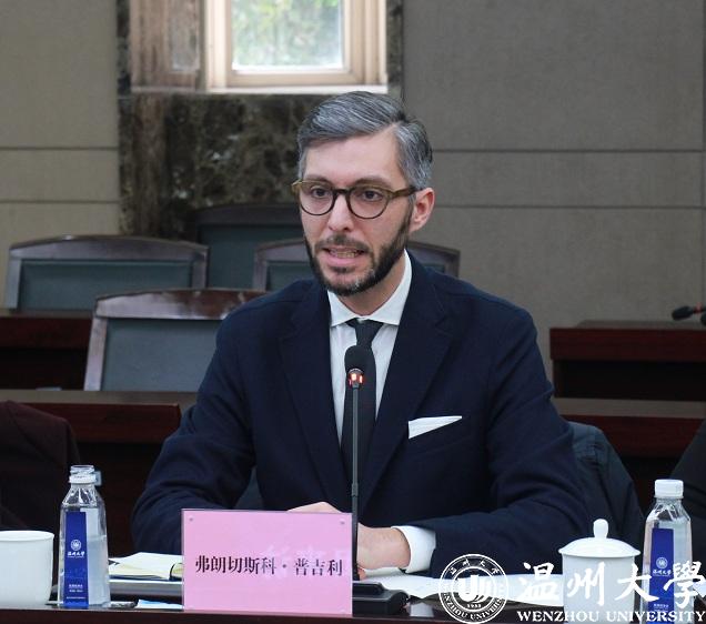 弗朗切斯科•普吉利省长对温大的热情表示感谢,并介绍了普拉托省的概况以及普拉托省的温籍华人华侨所作的巨大贡献和普拉托省中文课程教育的发展,提出要与温大合作进行学生交流交换项目,并希望在华人华侨研究方面能从温大世界温州人研究中心得到更多确切的信息与帮助。并以项目为纽带,在科技教育方面进行密切的合作。