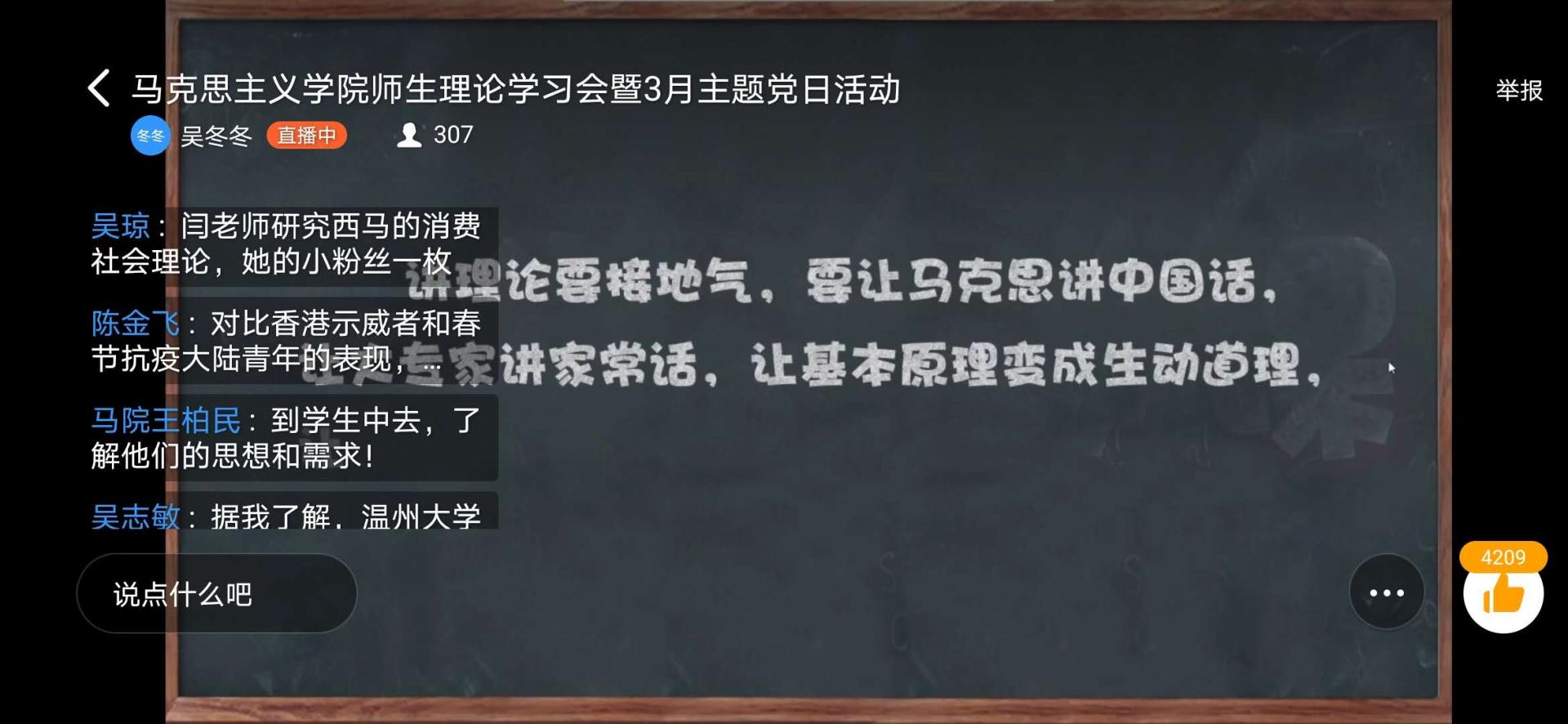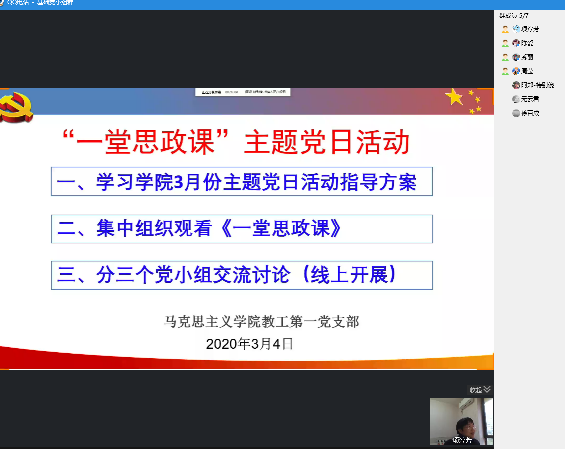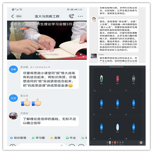 为积极响应校党委以“不见面”形式集中开展“抗疫情、 促发展、当先锋”支部主题党日活动的通知要求,加强做好疫情防控期间师生党员教育管理,3月4日下午,温州大学马克思主义学院全体师生党员、入党积极分子、团员齐聚共享课堂,一起学习、观看电影《一堂思政课》,师生对于思想、理论的深层需求,在屏幕上碰撞、交融,激起了满屏的报国之心、强国之志,充分体现了思政教师和未来思政教师的矢志不渝的立德树人之情怀。