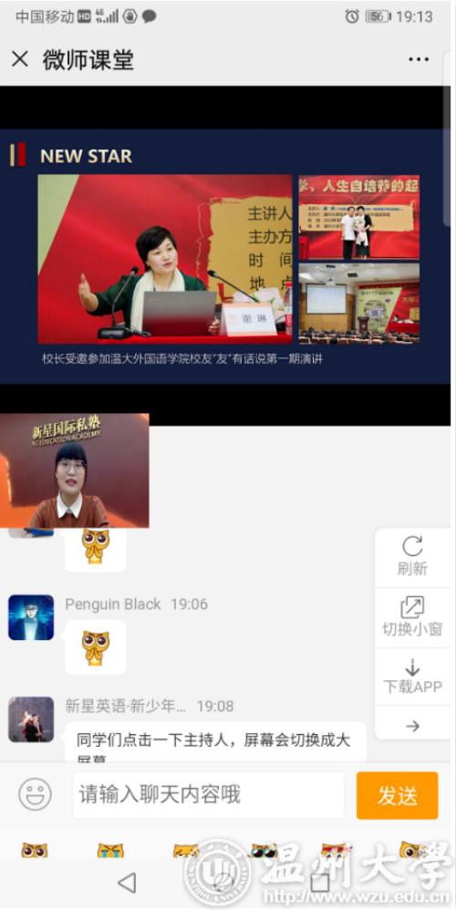 为了更好地拓宽毕业生就业渠道,助力企业复工复产工作,3月4日19:00,温州大学外国语学院举行瑞安新星英语学校线上招聘宣讲会,为毕业学子答疑解惑。