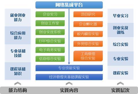 国贸专业利用校内外的实践基地和互动的教学团队,依次从课程实验、专业实验、综合试验、创业实战训练和毕业实习五个层次,帮助学生掌握课程基础知识,提升学生的专业技能、综合应用能力和就业创业能力。为了支撑该实践体系的运行,国贸专业建设了省级实验教学示范中心。 校内配备了进出口业务模拟实验室、金融实验室、银行模拟实验室、商务谈判模拟室等7个实验场所,可以模拟职业真实场景;更有融商创客空间与优秀的创业导师团队,为学生提供创新创业的平台。同时联合校友企业建立了20个校外实践基地,打造理论与实践相结合的实践环境。校内外共同构建成开放式、共享式、渐进式的“五层次”实践教学体系。