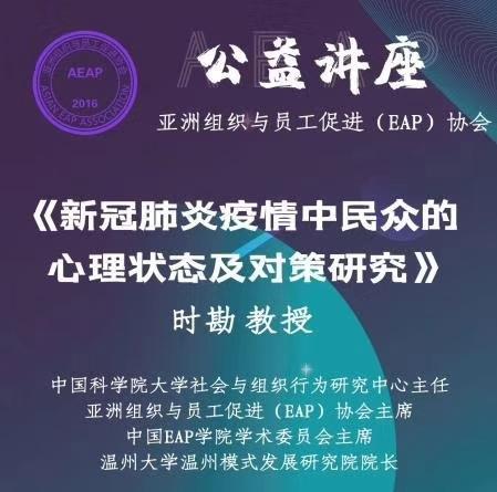 为抗击新冠肺炎,维护民众心理情绪稳定,近日,温州大学教育学院时勘教授在全员心理关爱直播间平台和中国EAP学院心理大讲堂同步直播《新冠肺炎疫情中民众的心理状态及对策研究》公益讲座。此次讲座,时勘教授围绕六个主题方面的内容展开,汇报关于疫情心理的研究成果。讲座旨在增强疫情防控期间民众心理健康疏导意识,普及心理健康科学知识,传播心理健康关怀方法,提高民众开展心理健康疏导的能力,增强为广大人民群众排忧解难,赢得抗击疫情斗争全面胜利的信心,加强防疫心理建设,促进社会和谐稳定。讲座内容详解如下: