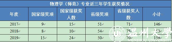 物理学(师范)专业近三年学生获奖情况