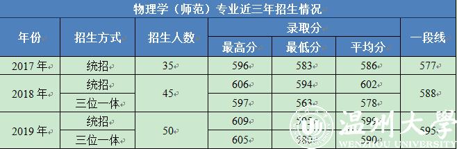 物理学(师范)专业近三年招生情