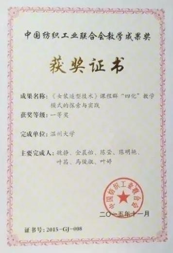 中国纺织工业联合会教学成果一等奖