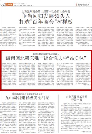 温州大学党委书记谢树华在对接活动上介绍了该校的发展思路。谢树华说:“去年以来,温大坚持以改革激发活力,主要围绕‘一个定位明方向、三大目标聚人心、三项改革促发展’的工作思路,做了大量卓有成效的工作,形成政通人和、欣欣向荣的发展态势。”谢树华介绍,在浙南闽北赣东 10 万平方公里、13 所本科院校的区域里,温州大学是唯一的综合性大学,建成高水平的教学研究型大学既是温大的责任使然,也是浙江省高等教育谋篇布局的现实需要。在这个区域,温大既要“站高位”,还要“站C位”,要起到强有力的引领和示范作用。