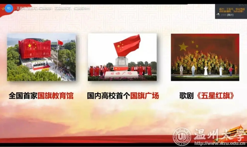 此次宣讲团的云端授课只是马院国旗宣讲团开讲的一个起点,接下来,马院将紧密围绕学校“国旗文化”打造,结合马院学科建设和专业特色,进一步扩大宣讲团规模,让更多青年教师、学生参与进来,走出校门,走到乡村、社区,走进中小学思政课堂,讲好国旗故事,进一步激发青年学子的爱国热情,为爱国主义教育贡献更大力量。