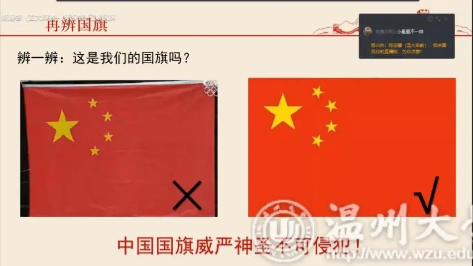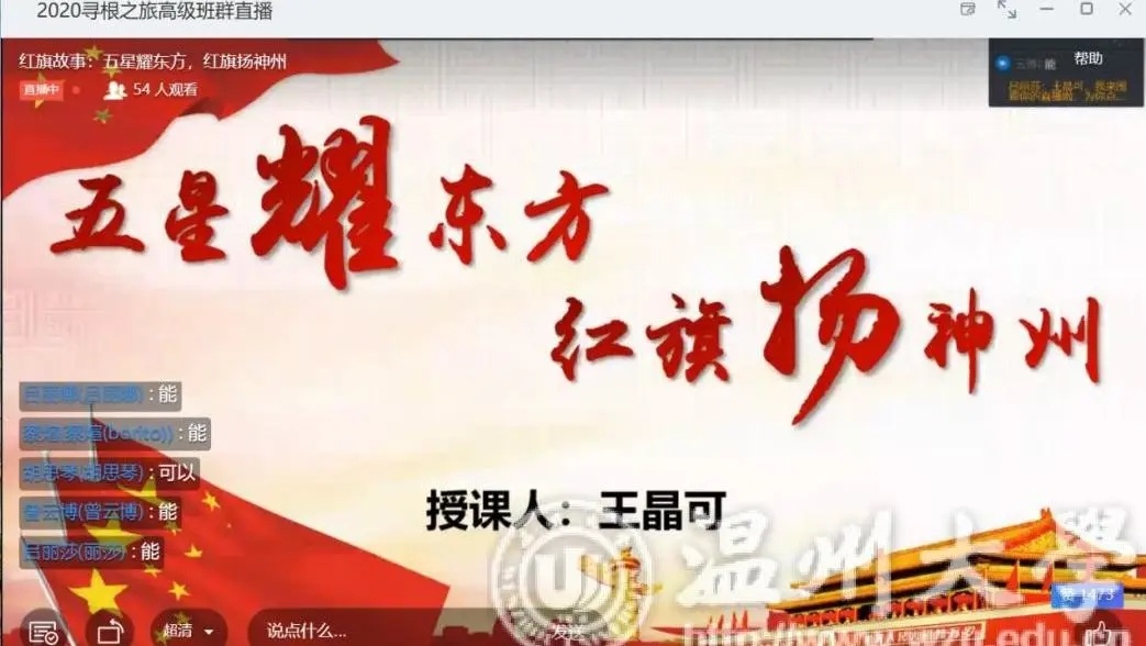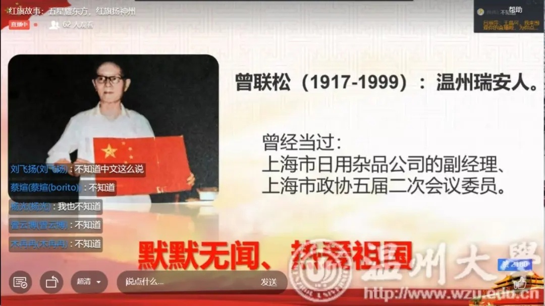 为了引导华侨子女树立爱国主义情怀,围绕学校“国旗文化”品牌打造,马克思主义学院成立国旗志愿服务宣讲团,主要负责此次云端夏令营“红旗故事”特色主题课程授课。通过对五星红旗自诞生至今的风雨历程、曾联松校友设计国旗的小故事、五星红旗的丰富内涵 、《中华人民共和国国旗法》等内容的讲述,让华侨子女学习五星红旗的相关知识,树立尊重国旗、爱护国旗的意识,培养对五星红旗的认同感、敬畏感与自豪感,从而激发华侨子女浓烈的爱国热情。