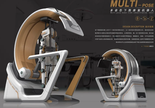 同时获得创意奖金奖与“创意奖最佳人气奖”的“多姿态下肢康复机器人”关注到了特殊人群康复运动的痛点。在设计中,该款产品将心理疏导与生理疗养相结合,给患者激励反馈,增强了训练乐趣。