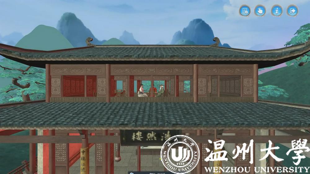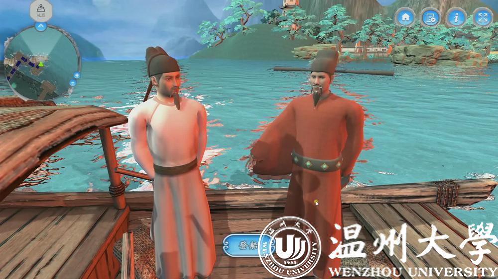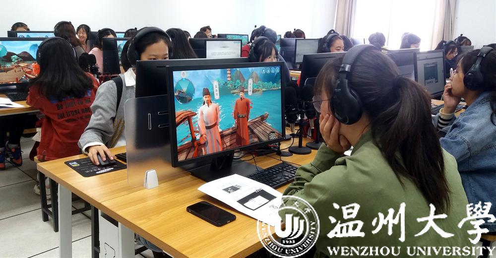《山水诗之意境体验虚拟仿真实验教学项目》在今年11月被正式认定为国家级虚拟仿真实验教学一流课程,是全国首批文学类的虚拟仿真实验教学项目,也是浙江省唯一的文学类虚拟仿真实验教学课程。2017年9月,该项目正式在温大人文学院上线试课,创新教学模式,深受学生欢迎。温州作为山水诗发源地,研发团队将此作为教学项目主题,学生可选取山水诗鼻祖谢灵运、山水诗代表诗人孟浩然、文天祥等文人作为虚拟仿真实验中的特定角色,以江心屿作为特色地标。在技术渲染的手段下,学生可以在充满意境的虚拟仿真环境中沉浸式地学习古典诗词,真正达到在自主学习过程中掌握系统化知识的目的。项目负责人洪之渊教授告诉记者,该项目的独创性在于将地方特色、创新性学习模式与高新技术融于学科教学之中。通过这个课程激发学生“想知”的欲望,知识点本身没有发生变化,但是学生对于知识点的把握的程度以及他的一种理解的程度和能够真正运用知识的程度,要比传统教学有更大的优势。目前该项目的课程内容正在不断丰富,接下来,课程内容还将结合VR技术,实现更为全景式、沉浸式的教学体验。
