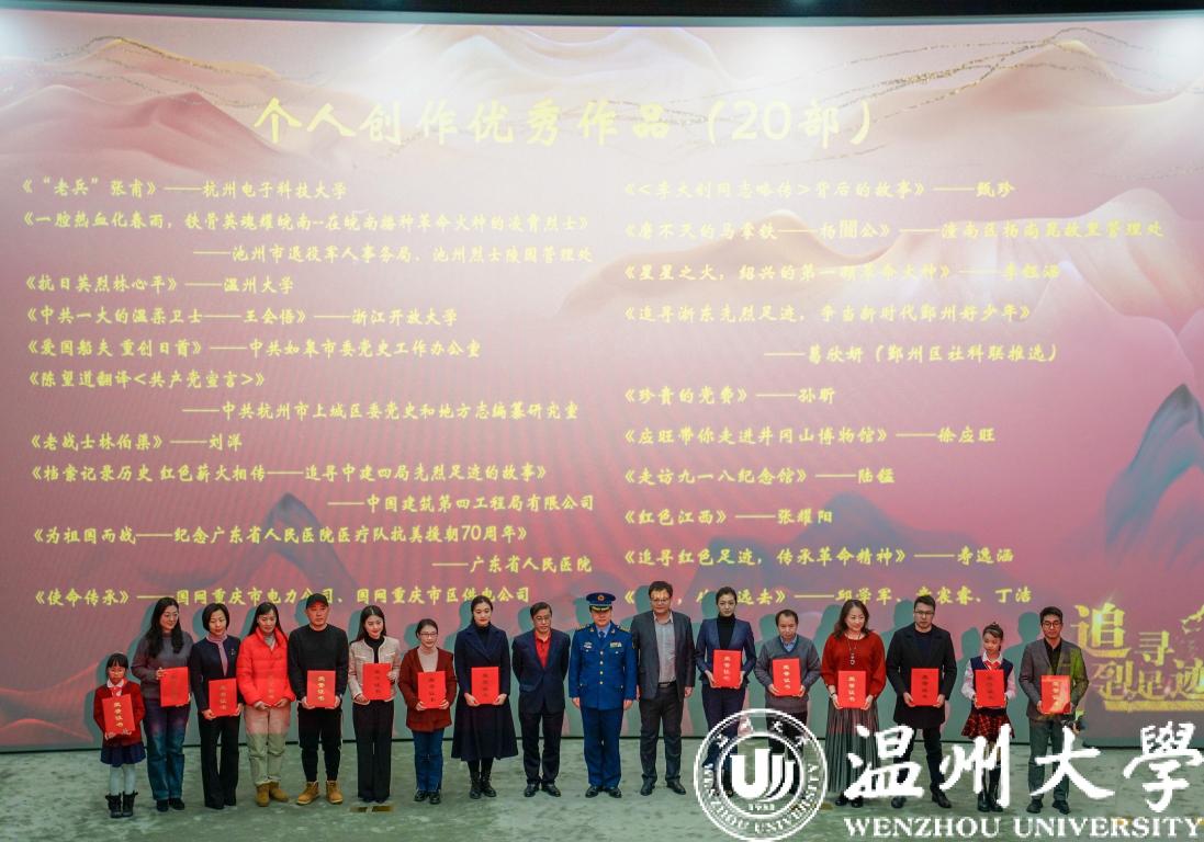 今天上午,“追寻先烈足迹”短视频征集展示活动成果发布会在北京市中国人民革命军事博物馆举行,40部优秀作品及20位优秀组织者受到表彰,浙江省有7部作品获奖。由温州大学拍摄并报送参评的《抗日英烈林心平》荣获“个人创作优秀作品”奖,是温州市唯一获奖作品。活动现场举行视频捐赠仪式,所有获奖作品将被中国人民革命军事博物馆收藏展示。