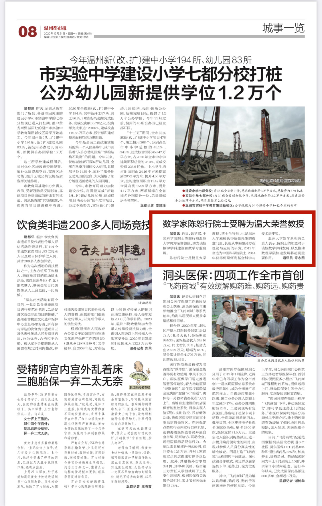 温州大学数学系相关负责人表示,陈恕行院士的加盟将对温州大学的数学学科发展,以及推动数理学院快速发展将起到重要的作用。