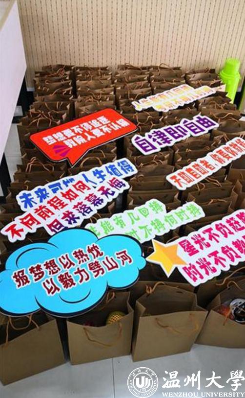 随着全国研究生入学考试的临近,温州大学教育学院于近日举行考研慰问会暨考前动员会,为考研学生添动力、发放慰问品。其中,每一份礼品都代表着一份寓意:优酸乳代表高分通过、考试“优”秀;苹果代表着稳扎稳打、“苹”安上岸;棒棒糖代表稳操胜券、“棒”上有名;橙子代表考试顺利、马到“橙”功……让考研学生大呼“学院太暖”!
