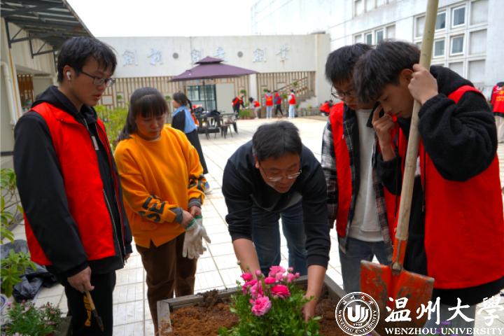 3月12日是植树节,温州大学建筑工程学院开展了一场“空中花园庭院改造”活动。