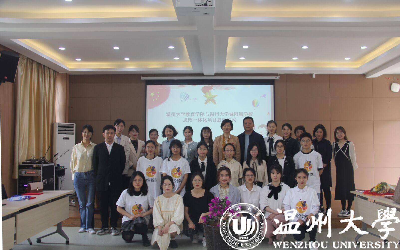 为实践思政教育大中小学一体化目标,锤炼大学生的政治素质,提高其管理与思政教育能力,同时活跃中小学德育教育氛围,强化对少年儿童的政治启蒙和价值观塑造,教育、引领广大少年儿童努力成长为能够担当民族复兴大任的时代新人。2021年4月2日,举行温州大学教育学院与温州大学城附属学校的思政一体化项目启动仪式,开展少先队辅导员助理结对活动,相关领导及师生代表出席活动。温州大学教育学院与温州大学城附属学校携手打造思政一体化项目,正式开启大中小学思政课一体化建设的“温州实践”,率先在本市作出全新探索。