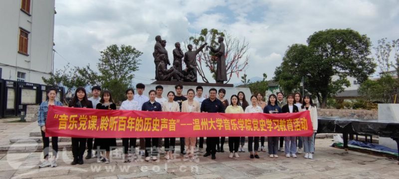 中国共产党百年华诞之际,温州大学“音乐党课”在瓯海区仙岩街道浙南一大会址前正式开讲,温州大学音乐学院教工第一党支部书记、副教授、硕士生导师张潇潇博士为学生党员带来题为《红梅赞——征程岁月中英勇不屈的革命之花》的首期讲演。