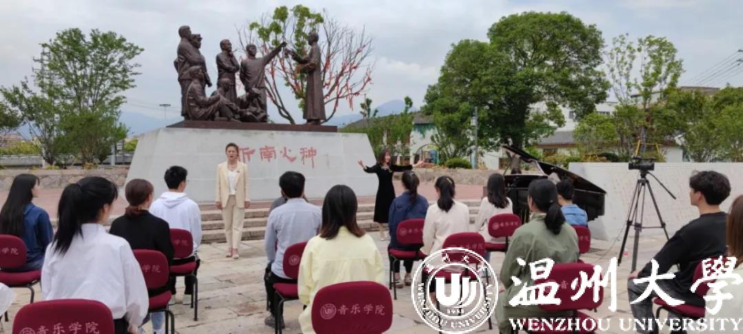 为庆祝中国共产党成立100周年,温州大学“音乐党课”近日在瓯海区仙岩街道浙南一大会址前正式开讲,温州大学音乐学院教工第一党支部书记、副教授、硕士生导师张潇潇博士为学生党员带来题为《红梅赞——征程岁月中英勇不屈的革命之花》的首期讲演。