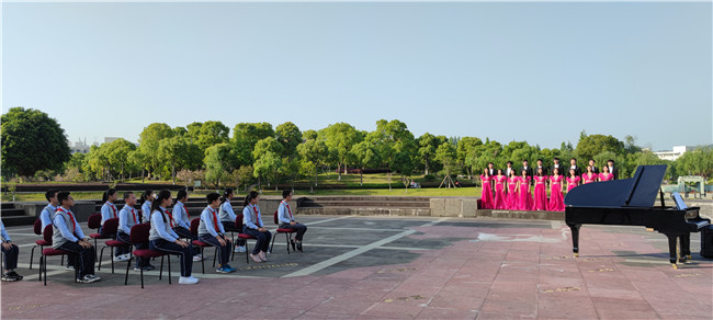 4月29日下午,温州大学“音乐党课”第二期在温州大学国旗广场上正式开讲,来自温州大学“鸿音传承”党员先锋团成员李治豫、徐双双等二十余位成员为来自温州大学城附属学校的少先队员们带来音乐党课——《国旗颂——国旗呀国旗,凝聚民族的力量》。