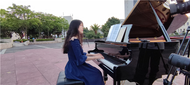 《国旗颂》是原创歌剧《五星红旗》的主题曲,该部歌剧讲述了温州大学校友、国旗设计者曾联松设计五星红旗的故事,反映浙江青年将个人情感抉择与家国命运紧密相连,颂扬勇于担当、矢志不渝的革命精神与爱国情怀。国旗广场上,雄伟的五星红旗雕塑成为本期音乐党课最好的背景。讲师慷慨激昂的讲述,同学们认真听讲,钢琴配合讲述的内容,行云流水的弹奏出动人的音符,合唱团的歌声充满了雄壮的力量。现场氛围庄严而热烈。