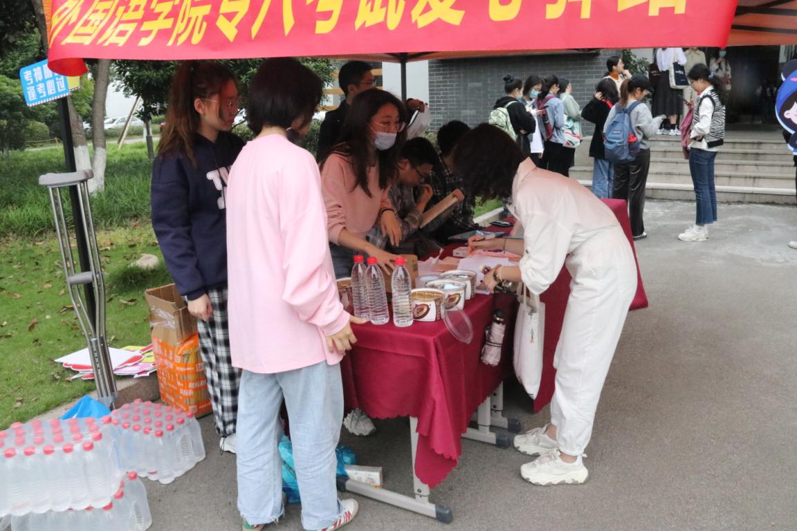 4月24日上午,英语专业八级考试于温州大学北校举行。为帮助16、17级考生顺利完成考试,外国语学院组织了“专八考试爱心驿站”活动,为考生们提供送水、送耳机等服务。外国语学院党委书记姜海燕老师、党委副书记陈勃老师亲临现场为考生们加油助力。