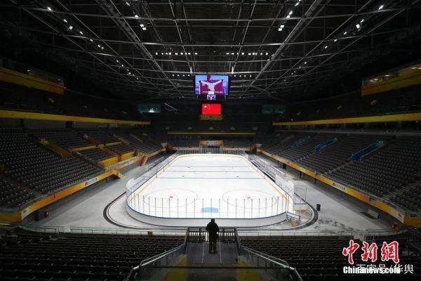 ▲北京2022年冬奥会及冬残奥会冰球比赛场馆国家体育馆于1月28日完成首次制冰工作,目前场馆具备比赛测试条件。图为已完成制冰的国家体育馆。(中新社资料图片 富田摄)