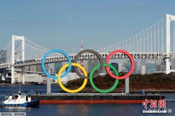 ▲当地时间2020年12月1日,正在用船运输的奥运五环标志,时隔4个月的安全检查和维修后,重新回到东京湾上。(中新网资料图片)