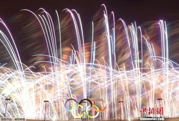 ▲里约奥运会闭幕式上,奥运五环与绚丽烟花交相呼应。(中新网资料图片)