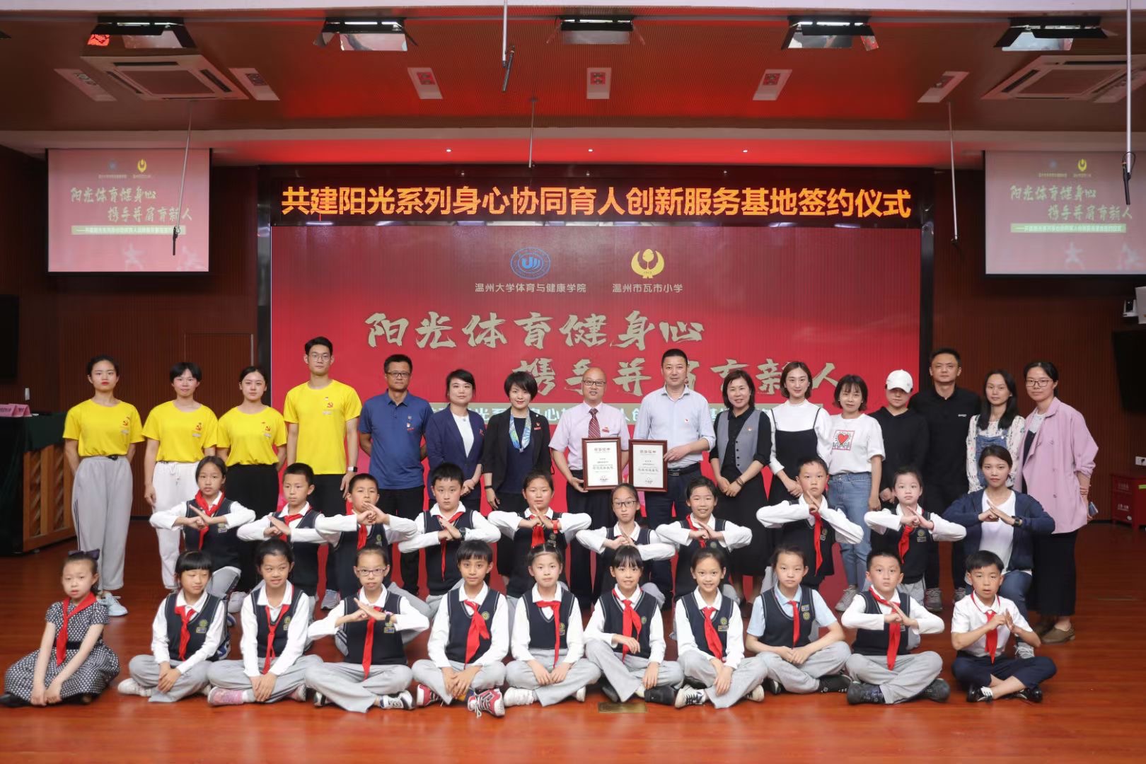 退步撩掌、跪步屈腕、弓步劈掌……小学生们仔细地学习着每一个动作、认真地聆听着每一处讲解。课程结束后,孩子们还依依不舍地拉着大学生们依依不舍。此次,志愿服务队充分发挥温州大学体育学科优势,形成育人资源共享模式,和瓦市小学等学校共建阳光系列身心协同育人创新服务基地,系统性开展阳光宝贝三点三课堂(每周三下午三点的第二课堂特色活动)、阳光心理素质拓展活动、设阳光课厅名师特色课堂、“阳光党建”教工特色品牌活动等活动,为促进区域教育文化品牌合作以及志愿服务深度化转型升级贡献力量。