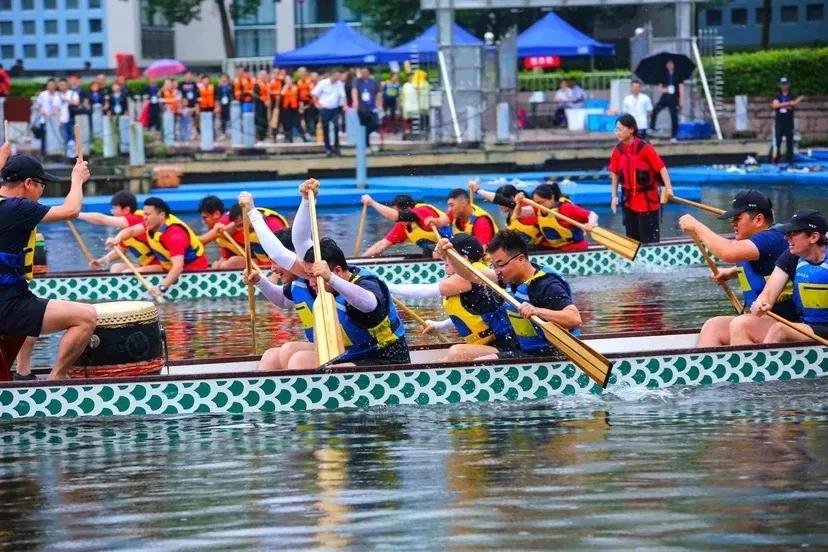 当天首先进行的是100米直道赛。发令号响,鼓声骤然密集起来,划手们节奏统一,船速不断加快,大家使出浑身力气,奋勇争先,龙舟在舵手的掌控下向终点进发。经过激烈角逐,在学生组中,温大一队、温大二队、温科职院一队获得一等奖;在教工组比赛中,温州医科大学、温大数理学院获得一等奖。